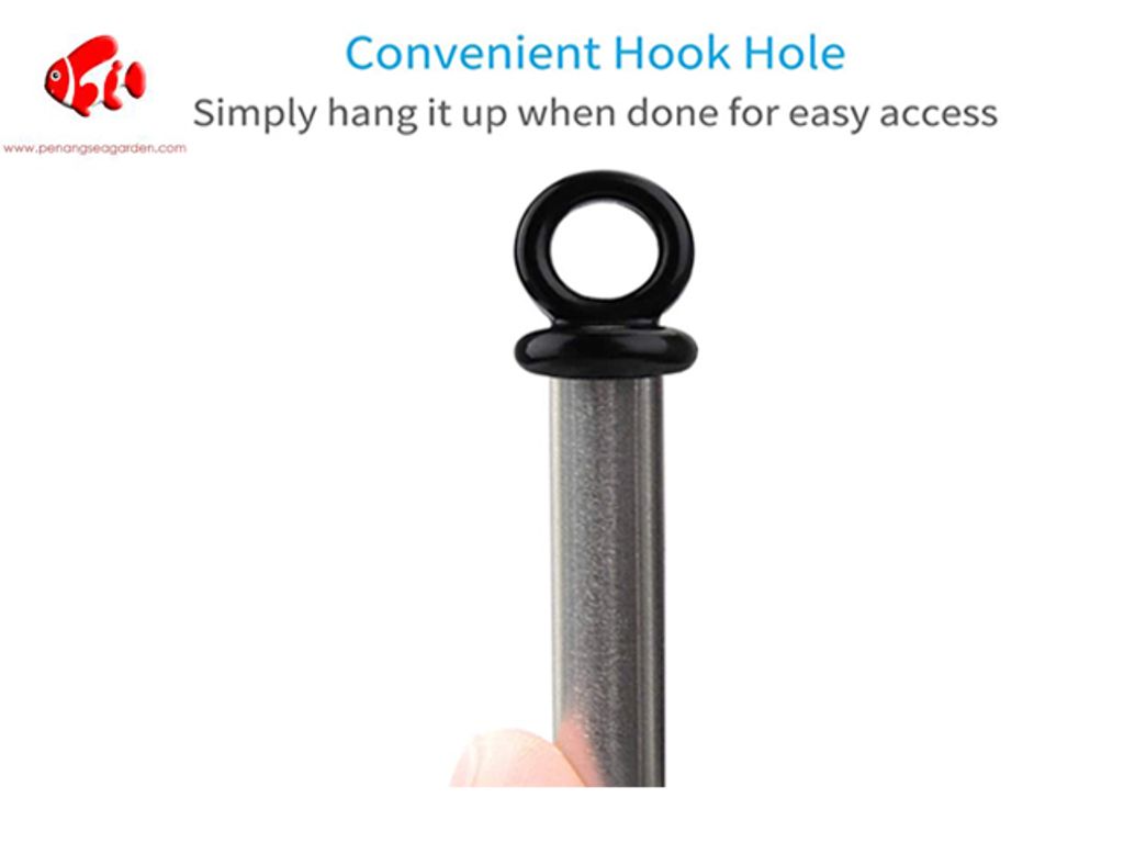 - Telescopic handle allows you to reach the bottom of 9 to 24 inch deep tank without dripping hands.